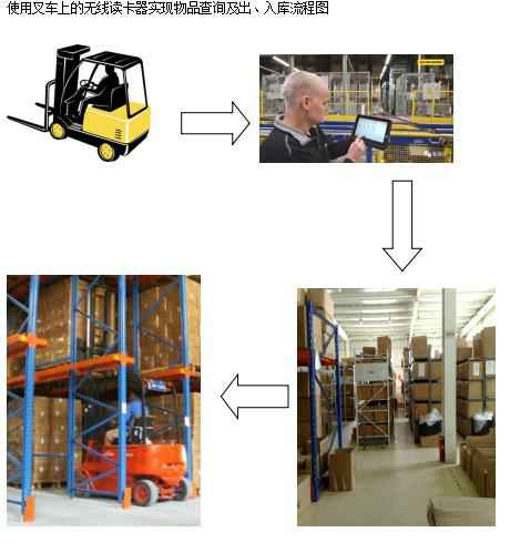 使用叉车上的无线读卡器实现物品查询及出、入库
